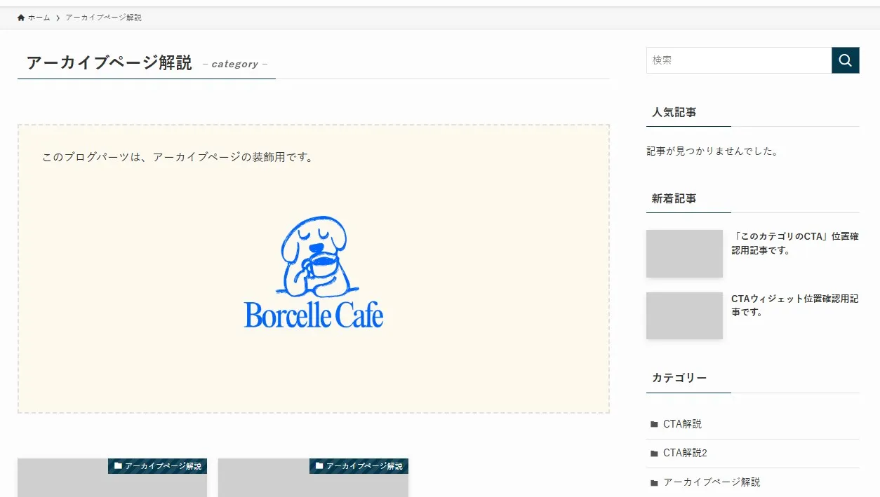 アーカイブページに、先ほど設定したブログパーツが挿入されていますね!