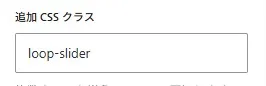 - 最後に、この「グループ」ブロックの「高度な設定」にある「追加 CSS クラス」に、loop-slider と入力します。このクラス名が、後でCSSを当てるための目印になります。